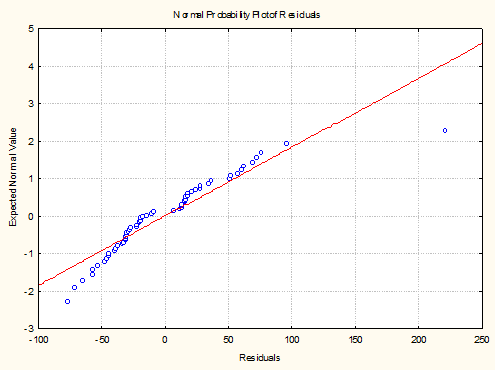 Рис. 4.1. График распределения остатков на нормальной вероятностной бумаге.