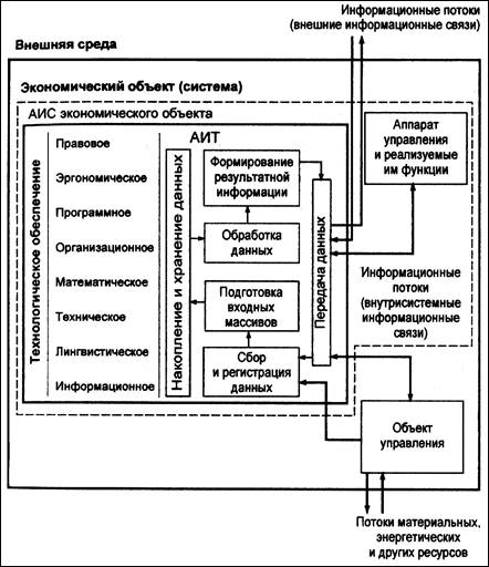 Место АИС и АИТ в управлении экономическим объектом показано на Рис. 1.2. Проведение автоматизации работы экономических служб подразумевает построение на базе АИС некой автоматизированной системы управления. Автоматизированная система управления (АСУ)