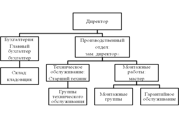 Производственный отдел включает подразделение технического обслуживания, подразделение монтажных работ и подразделение по ремонту и настройке оборудования. Контролирует работу производственного отдела заместитель директора, сферой деятельности которого также является работа с поставщиками, составление сметных расчетов по заявкам, работа с заказчиками по консультированию и разрешению спорных вопросов.