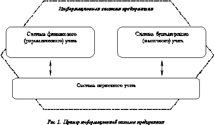 Прежде всего, введем термин "информационная система предприятия". В классическом понимании это все информационные потоки, точки их возникновения, обработки, накопления и потребления конечными пользователями плюс технические средства и технологии обработки информации. На схеме представлена типичная информационная система предприятия, включающая подсистемы налогового, управленческого и первичного учета. Каждая из подсистем может быть автоматизирована независимо от других. В частности, практически у всех белорусских предприятий бухгалтерский учет в той или иной степени автоматизирован.