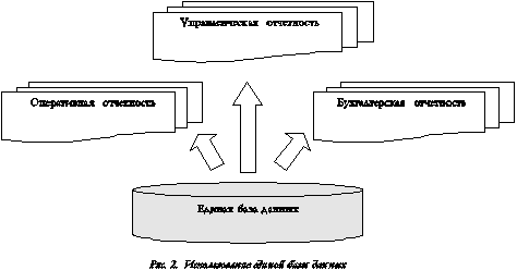 При использовании единой автоматизированной системы все первичные документы вводятся в одну общую базу (см. рис. 2). Эта интегрированная система генерирует налоговую, управленческую и оперативную отчетность для соответствующих служб компании.