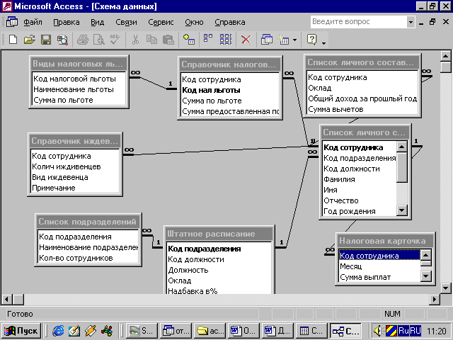 Схема данных представляет собой совокупность таблиц, связанных логически между собой различными типами связей Это позволит при изменении одного показателя автоматически изменять другие логически зависимые показатели (рисунок 1)