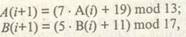Рассмотрите файл из двух реквизитов А и В с первой записью (11,8) и последующими значениями А и В, получаемыми по формулам: