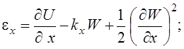 Геометрические соотношения для пологих оболочек при учете поперечных сдвигов принимают вид