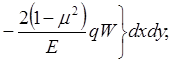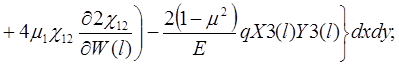 Оболочки покрытия и перекрытия строительных сооружений не могут допускать прогибы, соизмеримые с их толщиной, поэтому можно вести их расчет в геометрически линейной постановке, при этом существенно упрощаются все соотношения. В этом случае функционал полной энергии деформации ребристой оболочки при действии на нее поперечной нагрузки будет иметь вид