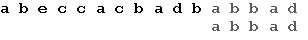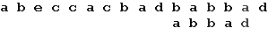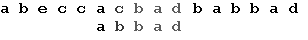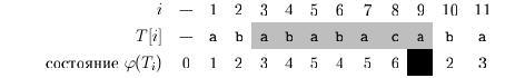Ниже приведен результат применения автомата к тексту Т = abababacaba. Под каждым символом Т[г] записано состояние автомата после прочтения этого символа (иными словами, значение (Тi