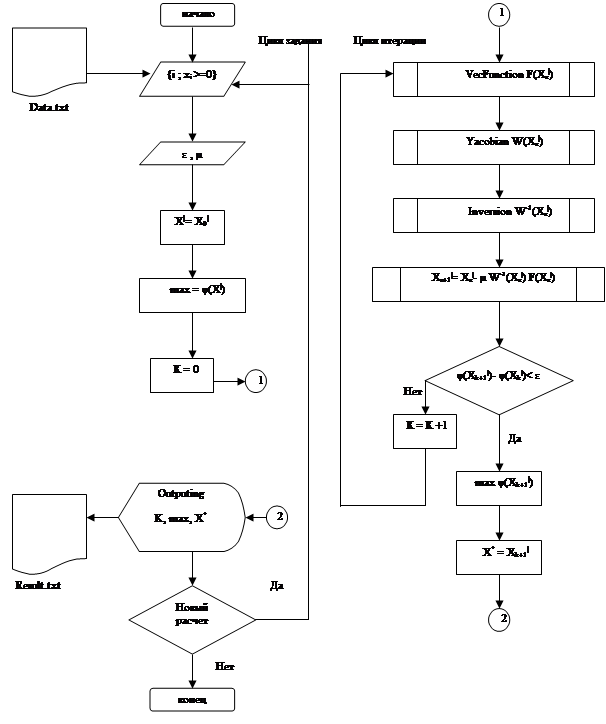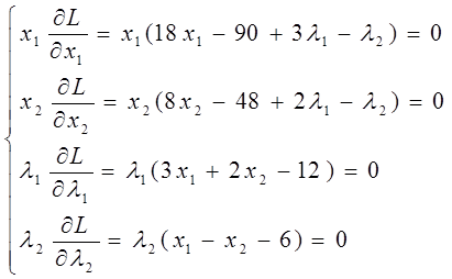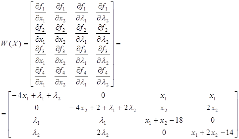 Получить выражение вектор-функции и матрицы Якоби системы и составить алгоритм численного решения задачи на основе условий Куна-Таккера.