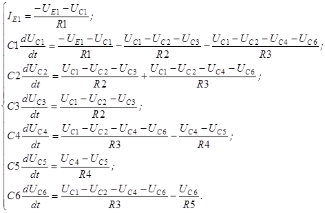 Таким образом, с использованием метода переменных состояния получена окончательная полная ММС заданной схемы, объединяющая в себе компонентные и топологические уравнения схемы.