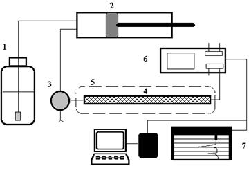 Инжектор (3) обеспечивает ввод пробы смеси разделяемых компонентов в колонку с достаточно высокой воспроизводимостью. Простые системы ввода пробы - "stop-flow" требуют остановки насоса и, поэтому, менее удобны, чем петлевые дозаторы, разработанные фирмой Reodyne.