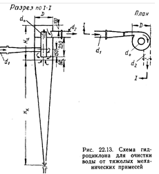 Сточные воды могут быть очищены от грубых тяжелых примесей в гидроциклонах.