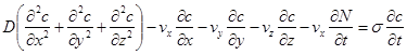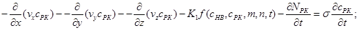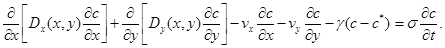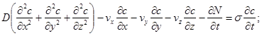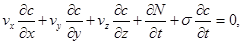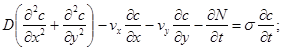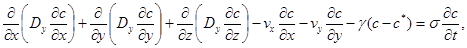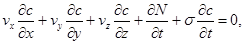 Процес міграції розчинних речовин при фільтрації підземних вод, як відомо, описується наступною системою рівнянь.