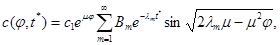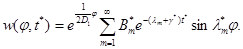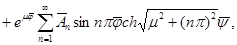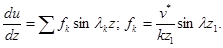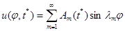 Розв'язок задачі (4.4) записується у вигляді (3.126). Застосуємо метод відокремлювання змінних до задачі (4.5), (4.6). Отримуємо розв'язок у вигляді ряду Фур'є. Отже, шуканий розв'язок можна записати у вигляді