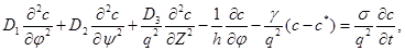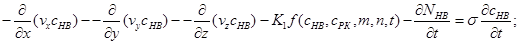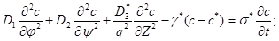час у добі; - оператор Гамильтона; - константа швидкості масообміну; β