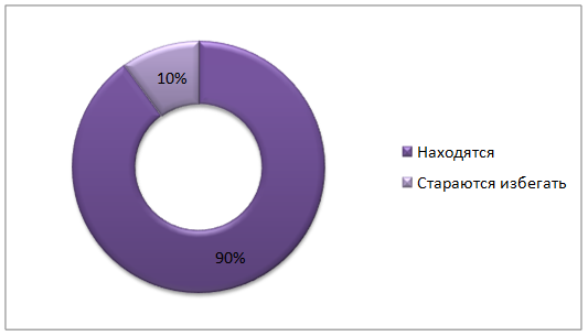 90% опрошенных сотрудников находятся в непосредственной близости к пациентам, чтобы предупредить их внезапные поступки. 10% (1 человек) старается не приближаться к агрессивным пациентам – сотрудник, начинающий работать в отделении, практически не имеющий стажа по специальности (см.рис.3).