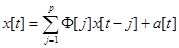 где - коэффициенты АР, - некоррелированные случайные отсчеты, - порядок модели АР.