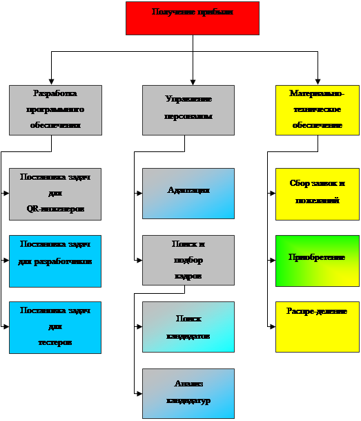Для формирования общей структуры управления необходимо построить дерево целей. При этом за основу берётся общая цель организации: создание качественного ПО. На рис.1. показано дерево целей ООО «Прикладные системы».