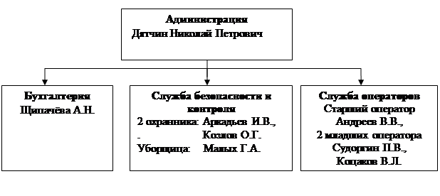 Численность персонала – 8 человек, их должности описаны в схеме организационной структуры.