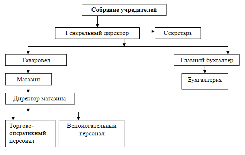 Рис. 1. Схема организационной структуры управления торговым предприятием ООО «Капитал»