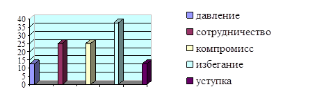 Уступка - 12,5% (1 чел), у руководителя, придерживающегося этой стратегии поведения в конфликте коллектив оценил психологический климат как неблагоприятный.