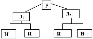 Рис. 2. Линейная структура управления: Р – руководитель; Л – лин. органы управления (лин. руководители); И– исполнители