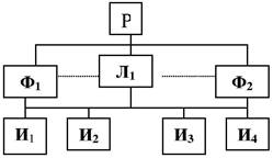 Рис. 4. Линейно-функциональная структура управления: Р – руководитель; Ф – функциональные органы управления (функциональные руководители); Л – линейные органы управления: И – исполнители