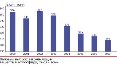 Объем валовых выбросов в атмосферу с 2000 по 2007 год сокращен на 13% с 356 до 308 тыс. т/год. В 2007 году удалось достичь дополнительного снижения валовых выбросов к уровню 2006 года на 8100 тонн, или на 0,6 кг на тонну выплавляемой стали.