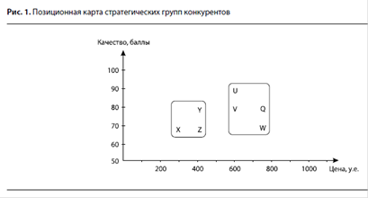 На основе использования позиционной карты определяется стратегическая группа конкурентов, к которой принадлежит конкретная анализируемая организация.