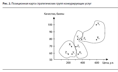 Построенная позиционная карта стратегических групп конкурентов приведена на рис. 1.