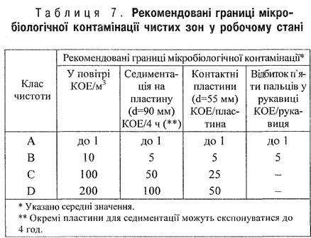 СМР ЄС виділяє чотири класи чистоти для виробництва стерильної продукції (табл. 6, табл. 7).