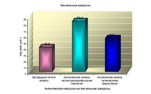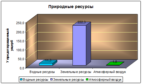 Из диаграммы видно, что наибольшее внимание предотвращению экологического ущерба уделяется земельным ресурсам, затем водным ресурсам и в последнюю очередь атмосферному воздуху.