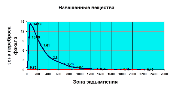 Из расчетов по отдельным видам веществ можно сделать выводы, что предприятие необходимо размещать на расстоянии 2230 м от жилой зоны так как концентрация взвешенных веществ убывает на этом расстоянии.