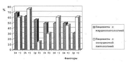 Сосудистая патология проявляется через сосудистые катастрофы по типу инсульта, церебро-васкулярнцю болезнь, атеросклероз нижних конечностей, дисциркуляторную энцефалопатию, гипертензии, патологическую реактивность сосудистой стенки на фармакопрепараты, другими словами, проявляется через морфологические нарушения. Следовательно, клиническая картина данной патологии в меньшей степени включает психогенные факторы, т.е. имеет соматопсихическую природу. Данная группа устала от проявлений болезни, от лечения, которое они рассматривают как бессмысленное, от проблем взаимодействия с миром. Отсюда - капитуляция перед болезнью и ухудшение состояния.