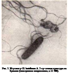 Спора со жгутиками у Clostridium bolulinum. А. 6-суточнан культура на бульоне (электронная микроскопия, х 11 500).