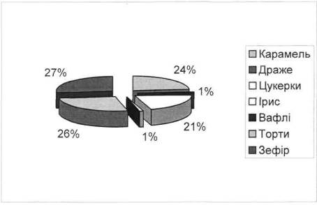 Середній асортимент українських кондитерських фабрик на сьогоднішній час складає не менше 70 найменувань. В деяких підприємств асортиментний ряд нараховує більше 200 позицій і він продовжує зростати.