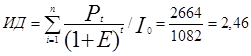 2. Рассчитаем индекс доходности – отношение суммы чистых приведенных денежных потоков к величине инвестиций