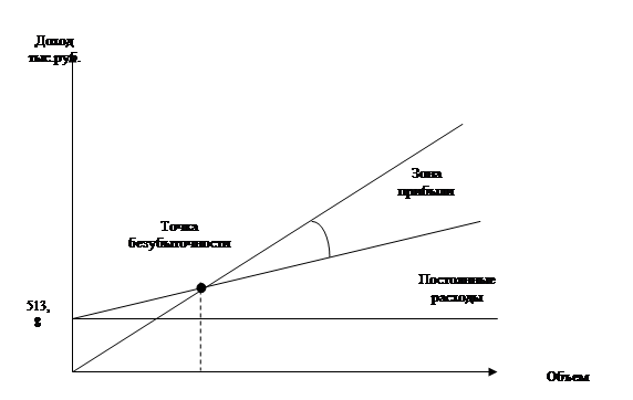 Прогноз точки безубыточности дает ответ на вопрос о том, какой объем оказанных услуг необходим для того, чтобы доходы предприятия совпали с его расходами. В этой точке достигается равновесие доходов и расходов.