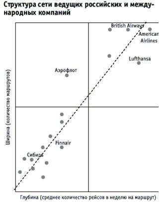 По эффективности маршрутной сети крупнейшие российские авиаперевозчики не уступают своим западным коллегам. В советское время внутренняя маршрутная сеть создавалась в расчете на поток пассажиров в 200 млн. (перевозилось около 140 млн.), было построено огромное количество узловых аэропортов, постепенно создавалась система внутренних стыковок.
