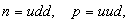 Внутрішня структура лептонів невідома, а баріони і деякі мезони складаються з кварків, які є частинками речовини. Нейтрони n і протони p складаються з трійок кварків: а - мезон v з кварка і антикварка: Заряди u-кварка і d-кварка рівні відповідно +2/3 і - 1/3 заряду електрона. Заряди антикварків протилежні по знаку[8]