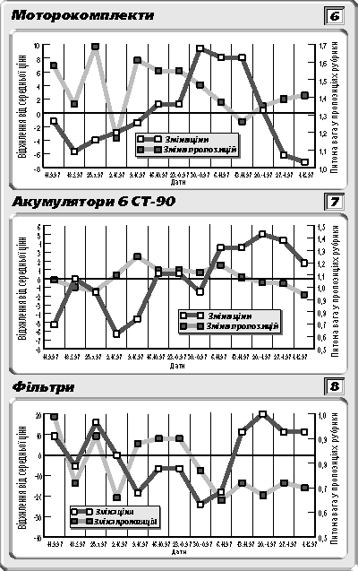 Табл.3,5 Структура пропозицій (у %) і цінова кон’юктура основних позицій
