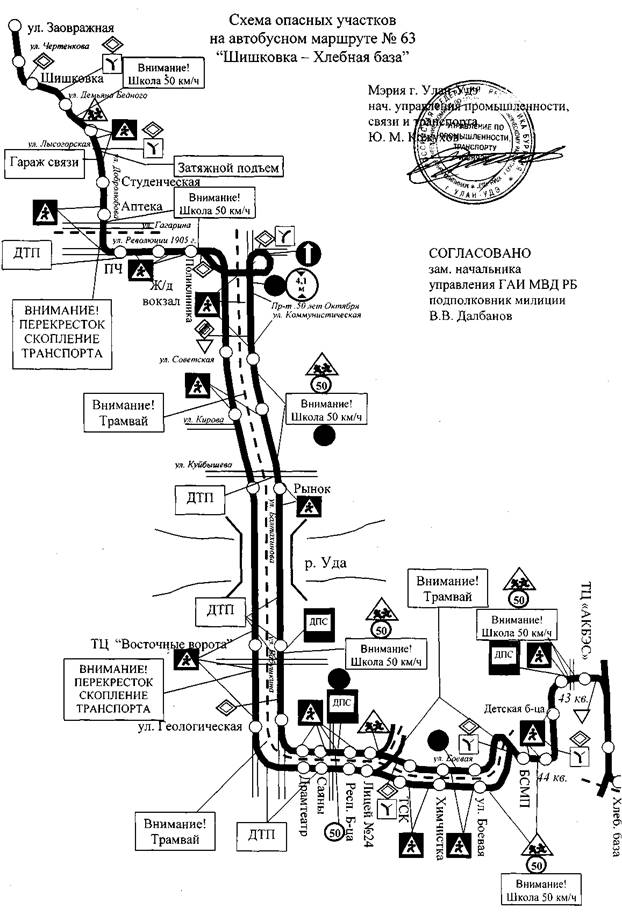 Данный график составлялся в 2002 году и не учитывал пробки на дорогах города Улан-Удэ. Мы же предлагаем усовершенствованный временной график движения машин на маршруте №63, который предусматривает затрудненное движение на дорогах нашего города с 07.30 до 09.00 и с 16.00 до 19.00. Данные о дорожных пробках были получены в ходе опроса водителей маршрута.
