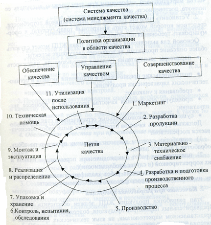 В основе всех систем менеджмента качества лежит «петля качества». Согласно стандарту ИСО 8402 «петля качества» - концептуальная модель взаимозависимых видов деятельности, влияющих на качество на различных стадиях от оценки потребностей до оценки удовлетворения. Она включает 11 этапов или стадий жизненного цикла продукта (рис), на каждой их которых должна производиться оценка качества.