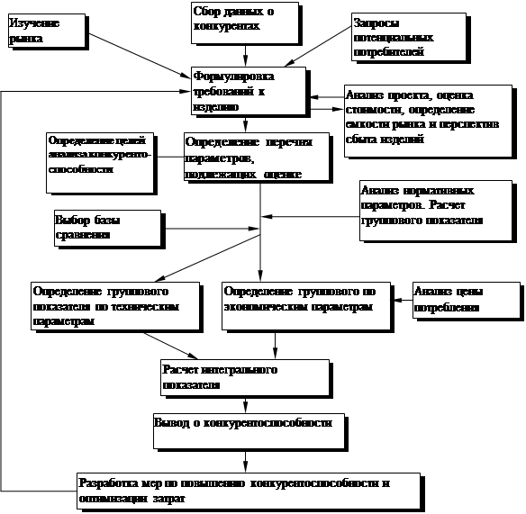 Анализ конкурентоспособности начинается с оценки нормативных параметров. Если хотя бы один из них не соответствует уровню, который предписан действующими нормами и стандартами, то дальнейшая оценка конкурентоспособности продукции нецелесообразна, независимо от результата сравнения по другим параметрам. В то же время, превышение норм и стандартов и законодательства не может рассматриваться как преимущество продукции, поскольку с точки зрения потребителя оно часто является бесполезным и потребительской стоимости не увеличивает. Исключения могут составить случаи, когда покупатель заинтересован в некотором превышении действующих норм и стандартов в расчете на ужесточение их в будущем.