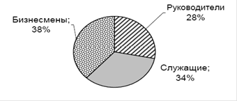 Выборка была локализованной. В выборку вошло 25 респондентов из них 76% употребляющие сигареты. Реальные посетители магазина «Копеечка» в возрасте от 26 – 45 лет. По роду занятий руководители (28%) и служащие (34%) бизнесмены (38%) рис. 2.2.4. Мужчин (42%) и женщин (58%) примерно в равном количестве. Возраст респондентов от 26 до 50 лет.