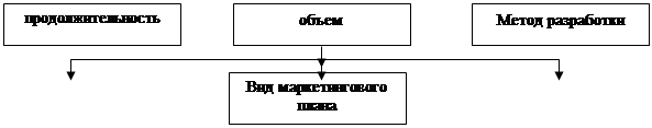 Планы маркетинга могут быть краткосрочными (обычно на 1 год), средне срочными (от 2 до 5 лет) или долгосрочными (от 5 лет). Многие фирмы опираются на сочетание этих планов. Кратко- и среднесрочные планы более детализированы и оперативны, чем долгосрочные. Например, план, рассчитанный на 1 год, может задавать точные цели маркетинг и стратегии для каждого продукта, предлагаемого фирмой, в то время как пятнадцатилетний план может ограничиваться прогнозированием внешней среды на этот период и определением долгосрочных потребностей организации.