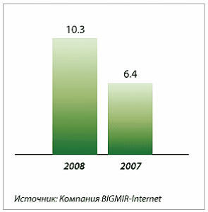 В 2008 році ринок інтернет-реклами в Україні знову показав позитивну динаміку, склавши в підсумку $20 млн. проти $12 млн. в 2007 році. При цьому обсяг ринку контекстної реклами подвоївся й досяг $6 млн., зайнявши біля 0,5% загального обсягу ринку реклами в Україні у 2008 році – 1 337 млн.$.