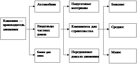 Сегментация может осуществляться также при последовательном применении нескольких критериев. Важно, чтобы сегменты не оказались слишком малочисленными, т.е. невыгодными для коммерческого освоения. В качестве примера (рис. 1) приводится фрагмент результатов последовательной трехступенчатой сегментации рынка потребителей алюминия:
