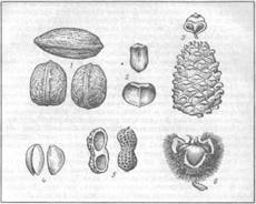 Костянковые орехи получили такое название за сходство строения плода с косточковыми. Плод состоит из наружной сочной кожуры, деревянистой скорлупы и ядра. По мере созревания сочная кожура высыхает, лопается, освобождая орех. К костян-ковым орехам относят грецкий орех, миндаль, фисташки.