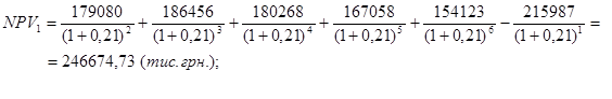 Грошовий потік за роками наведений в таблиці 8.1. Ставка дисконтування ― 21%.
