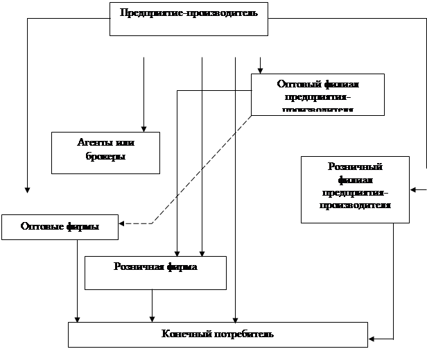 - производитель может использовать систему распределения, состоящую из каналов разных уровней;