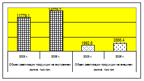 На ООО «СКФ» осуществляется внешняя и внутренняя торговля продукцией собственного производства, причем разделение по данным видам коммерческой деятельности осуществляется в соотношении 1 к 5 в пользу реализации продукции предприятия на внутреннем рынке. В распределении реализации по формам торговли лидирующие позиции и высокий темп прироста имеет оптовая торговля, на втором месте розничная торговля, а на третьем дистрибьюторские отношения. Розничная торговля на внешнем рынке не осуществляется, а дистрибьюторские отношения приближаются по объемам к розничному обороту. За отчетный месяц март 2007 года недопоставлено продукции по договорам на сумму 20 тыс.грн., или на 5 %.